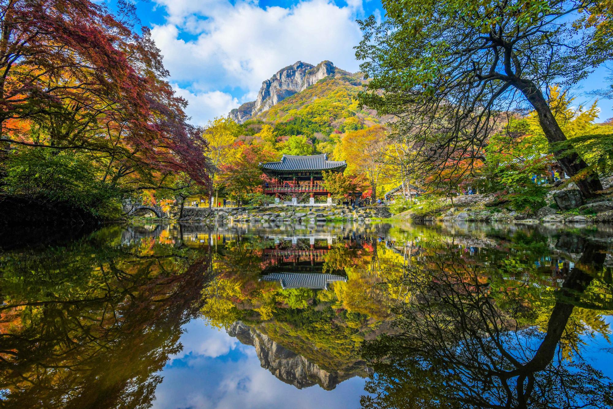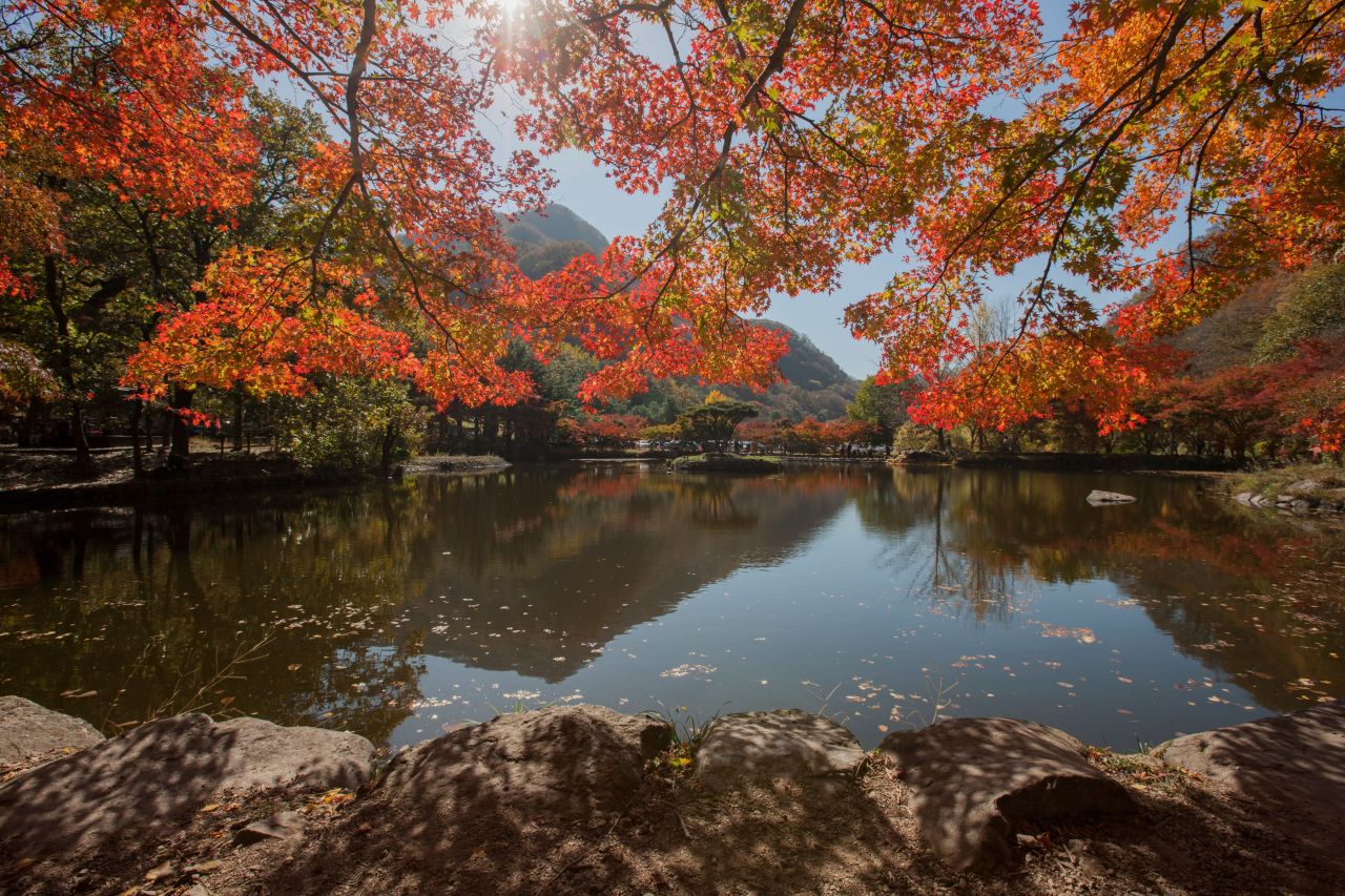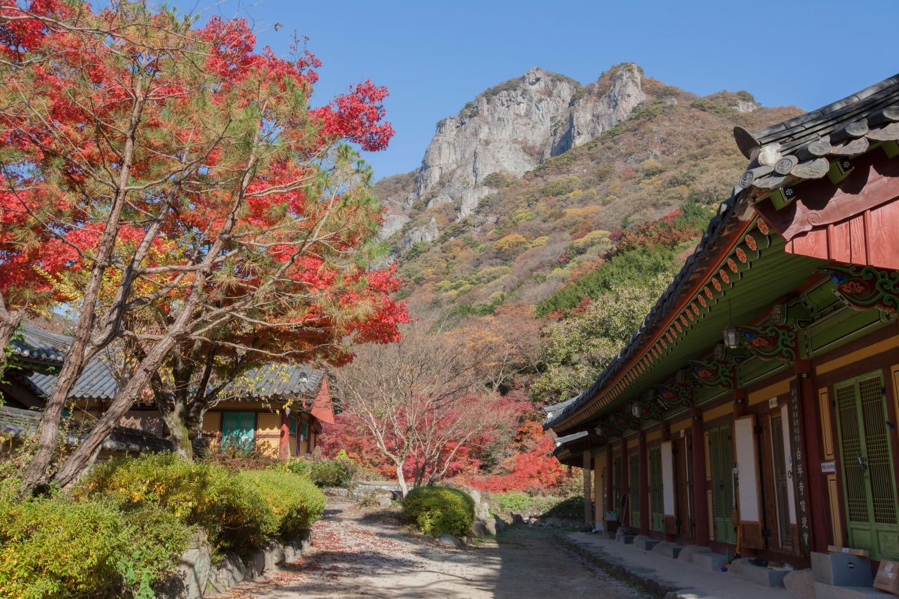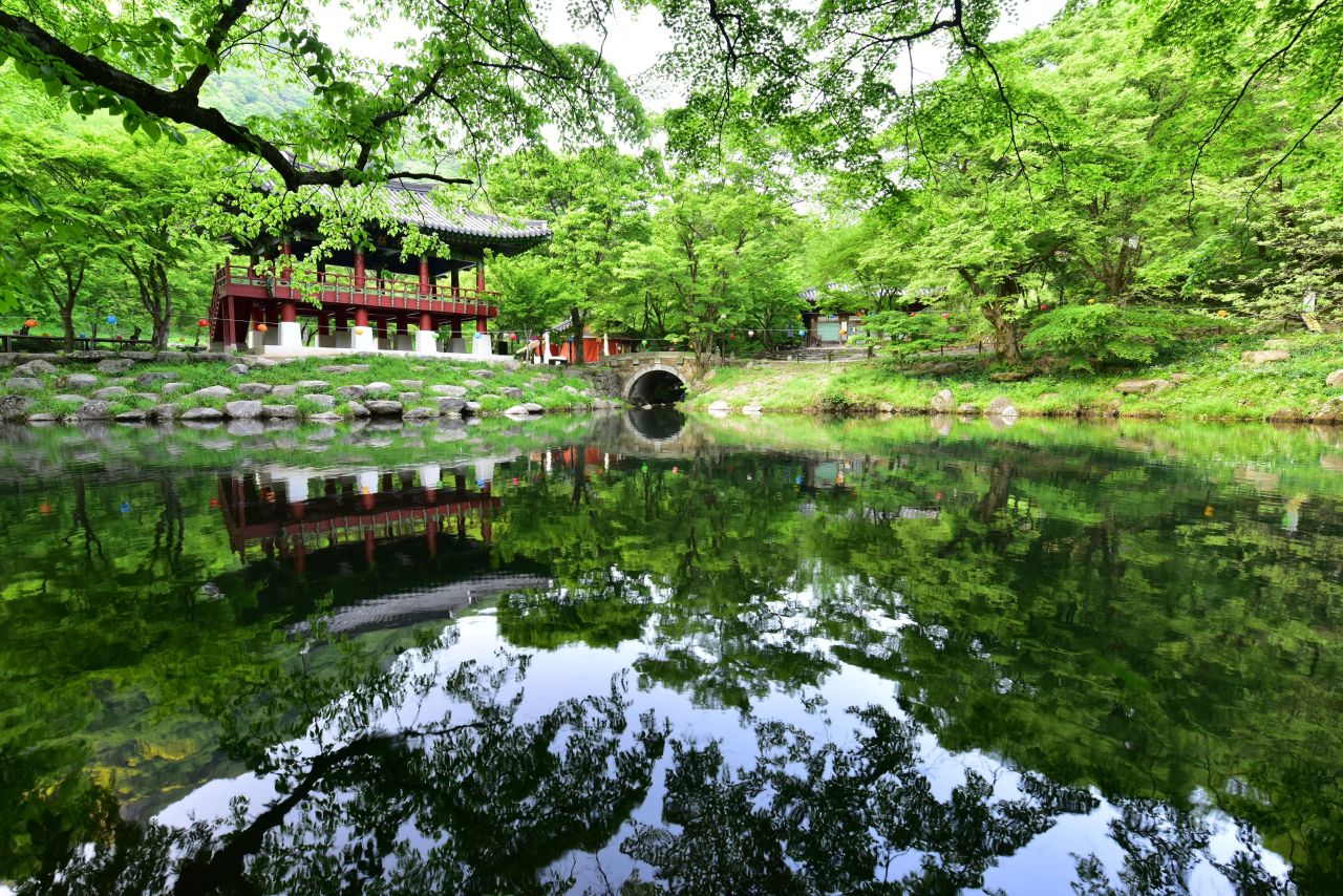 백양사 애기 단풍길                                 백양사 백양사는 내장산 국립공원 안에 있는 절로, 백제 무왕(632년) 때 창건했다고 전한다. 거대한 바위를 배경으로 좌우에 맑고 찬 계곡물이 흘러내려  경치가 매우 수려하다. 가을 단풍을 비롯하여 일 년 내내 변화 있는 아름다운 경치를 보여준다. 대웅전, 극락보전, 사천왕문은 전라남도 유형문화유산으로 소요대사부도는 보물로 지정되어 있다. 갈참나무와 단풍나무가 도열하듯 서 있는 숲 길을 지나 백양사 입구에 들어서면 가장 먼저 쌍계루가 눈에 띈다. 앞에는 계곡을 막아  만든 연못, 뒤로는 기암절벽이 병풍처럼 서 있어  연못물에 어른거리는 쌍계루의 모습이 한 폭의 그림 같다. 쌍계루를 지나면 대웅전과 극락보전, 부도탑이 나온다. 백양사는 창건 당시 백암사였다가 고려 때 정토사로 바뀌었다. 조선선조 때 환양조 사가 불경을 읽을 때마다 흰 양이 설법을 들었다 해서 백양사라 불리게 되었다고 한다. 선도량으로 유명했던 곳으로 불교계를 이끌었던 고승들도 많이 배출되었다. 일제 때 2대 교정(종정)을 지낸 환응, 조계종 초대 종정 만암, 태고종 초대 종정 묵담 등 근래에 와서 서옹당 종정 등 고승만도 5명이나 된다. 또한 등산로 쪽으로 올라가면 암자가 많고 약사암과 운문암, 천진암 등은 경관도 뛰어나다. 절 입구에서 20분 거리인 약사암은 전망대 격으로 첩첩산중에 둘러싸인 백양사의 모습이 한눈에 조망된다. 절경 맞은편에는 난대성의 늘 푸른 나무인 비자나무 5,000그루가 군락을 이뤄, 천연기념물로 지정되어 있으며, 주차장에서 절로 오르는 0.5㎞ 구간에 우거진 수백 년 된 아름드리 갈참나무 거목들, 3,000여 그루의 고로쇠나무와 비자림은 산림욕 하기에 더없이 좋다. 쌍계루 장성의 명소 백양사 입구에 들어서면 가장 먼저 만나게 되는 쌍계루는 백양사를 오고 가다 자연스럽게 보게 되는 누각이다. 쌍계루는 정자 자체가 아름답기도 하지만 정자가 품은 경치가 더 아름다운 곳이다. 고려시대 각진국사(1270~1355)가 처음 세운 쌍계루는 두 계곡이 만나는 곳에 있는 누각이라는 의미이다. 1370년 큰비가 내려 무너진 것을 1377년에 다시 세웠고 1950년 한국전쟁으로 소실되었고 현재의 건물은 1986년 건립된 것이다. 운문암과 천진암 계곡에서 흘러온 계곡물이 쌍계루 앞에서 연못을 이루고 이 연못 위로 쌍계루가 은은하게 비치는데 이처럼 쌍계루는 단독이 아닌 연못과 백학봉이 어우러져 온전하게 아름다운 모습을 갖추게 되는 것이다. 여름에는 싱그러운 초록과 어우러지고가을이 되면 울긋불긋 물든 단풍과 어우러져 쌍계사의 아름다움은 그 절정을 이룬다. 누각 안에는 180여 개의 현판이 걸려있는데 조선시대의 저명한 유학자들이 이곳을 방문하여 주변 경관의 아름다움을 노래한 시들을 적은 것이다. |