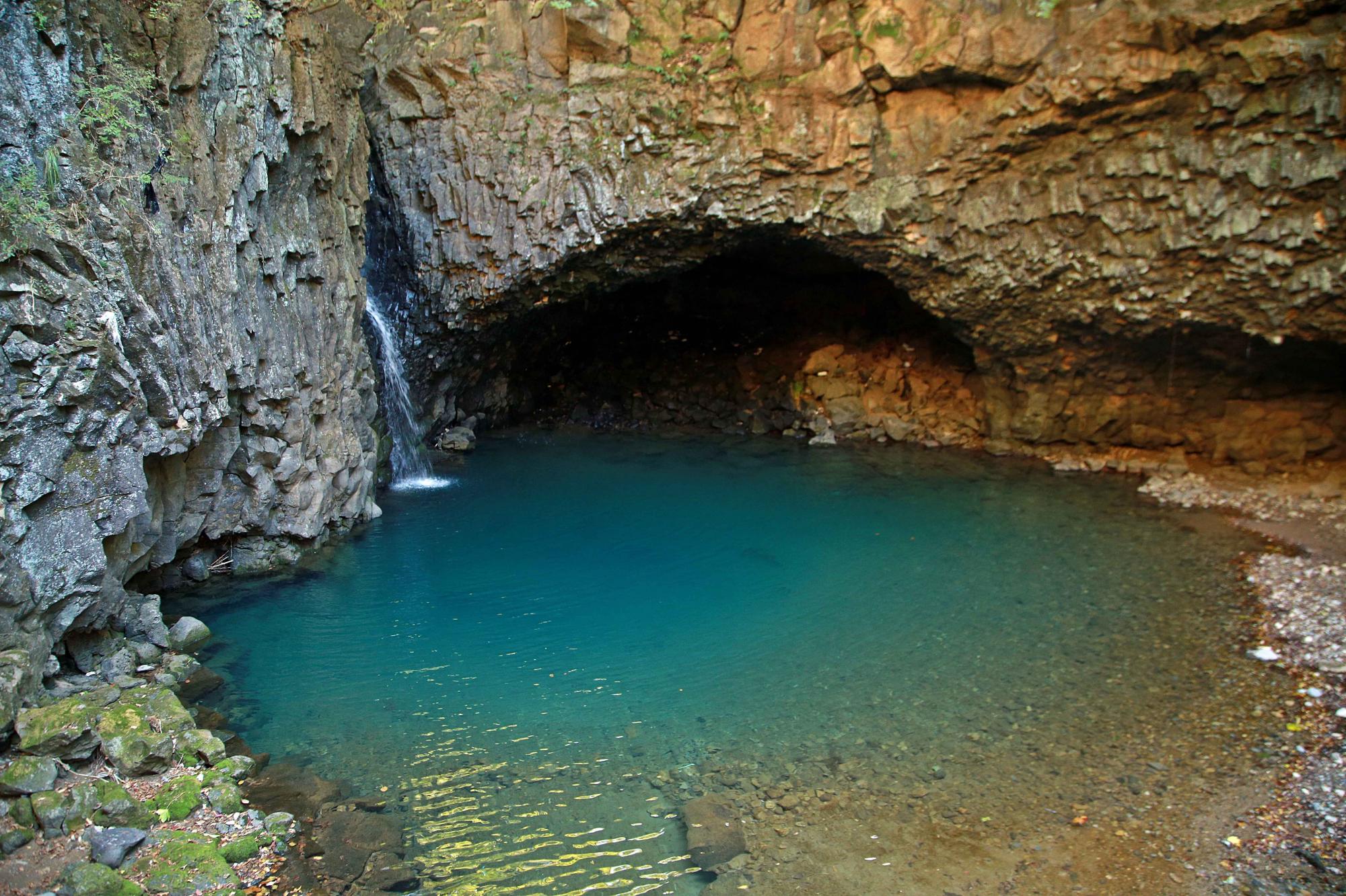직탕폭포                                 직탕폭포 (한탄강 유네스코 세계지질공원) 직탕폭포(直湯瀑布)는 한탄강 본류에 위치한 폭포로 편평한 현무암 위에 형성되어 우리나라의 다른 폭포들과는 달리 하천면을 따라 넓게 펼쳐져 있는 모습을 하고 있다. 직탕폭포는 용암이 겹겹이 식어 굳어진 현무암 위로 오랫동안 물이 흐르면서 풍화와 침식작용을 받는 과정에서 현무암의 주상절리를 따라 떨어져 나감으로써 계단 모양의 폭포가 형성된 것으로 높이는 약 3m에 불과하지만 너비는 약 80여 m다. 직탕폭포를 이루고 있는 암석은 신생대 제4기에 만들어진 현무암으로 형성 시기는 54만 년 전에서 12만 년 전 사이로 추정되고 있다.이 암석은 서울과 원산을 잇는 추가령구조곡 하부의 연약한 지점을 따라 솟아오른 용암이 흘러내려와 굳어진 것으로 철원 용암대지를 구성하고 있는 현무암의 일부이다. <출처 : 한탄강지질공원> |