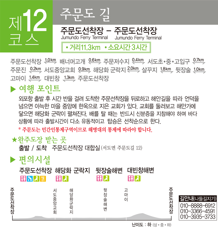 주문도 주문도는 인천광역시 강화군 서도면에 위치한 네 개의 섬 중 하나로, 볼음도와 함께 아름다운 섬으로 알려져 있다. 조선 후기 임경업 장군이 중국에 사신으로 갈 때 이 섬에서 한양의 임금에게 하직의 글을 올렸다는 전승이 있으며, 이로 인해 ‘주문도(奏文島)’라 불리다가 현재의 한자 표기인 ‘주문도(注文島)’로 바뀌었다. 조선 인조 때에는 교동수영에 속해 있었으며, 주문첨사가 파견되고 국영 목장이 운영되었을 만큼 전략적이고 지리적으로 중요한 위치였다. 섬의 주요 관광지로는 대빈창, 앞장술, 뒷장술 해변과 중앙에 위치한 봉구산이 있다. 특히 대빈창해수욕장과 뒷장술해수욕장 일대에는 해당화 군락이 형성되어 여름철에 아름다운 풍경을 감상할 수 있다. |