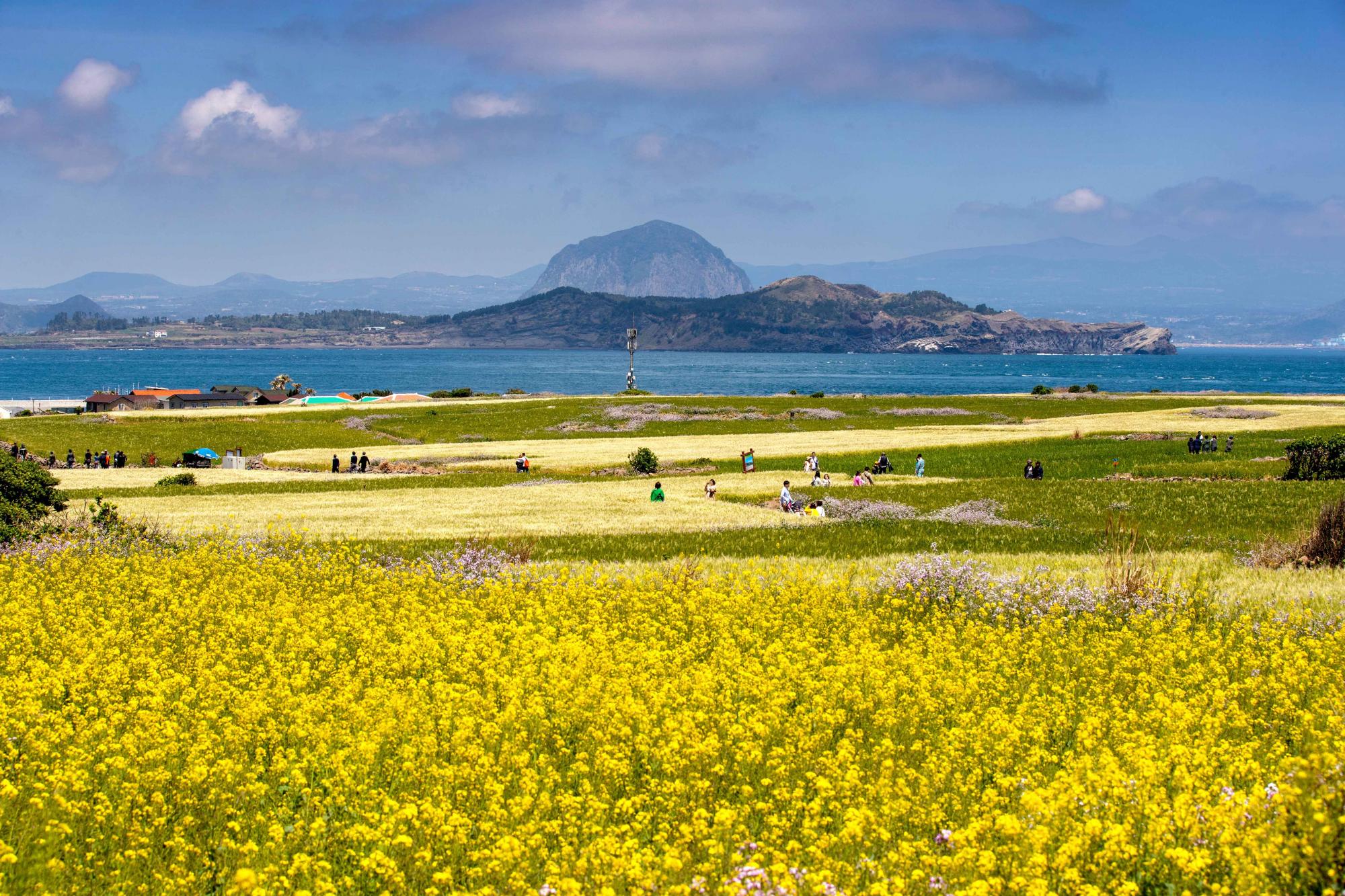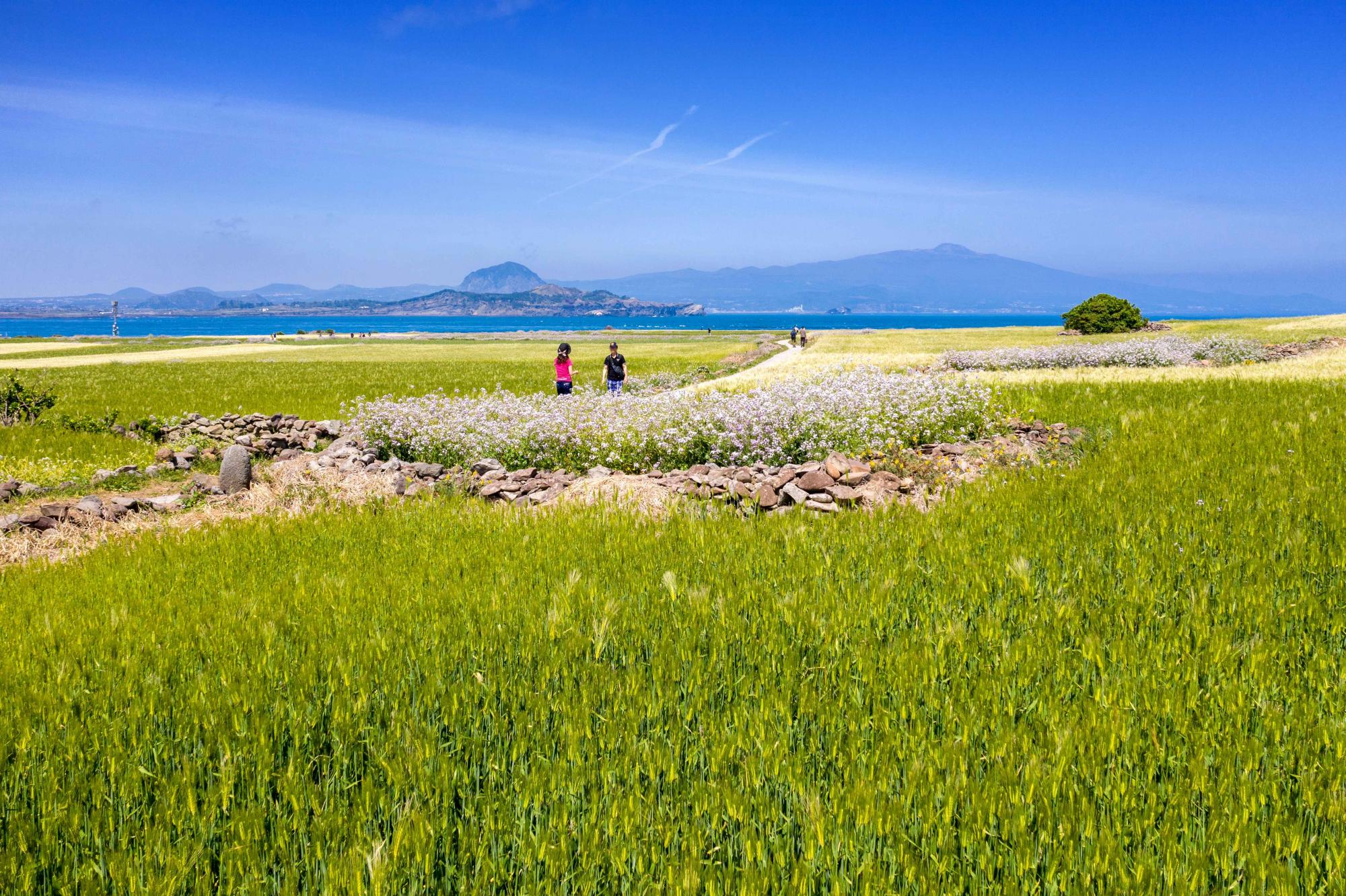 가파도                                 가파도 제주도 부속섬 중 4번째로 큰 섬 가파도는 위에서 내려다보면 바다를 헤엄쳐 가는 가오리 모양을 하고 있다. 이름은 가오리(가파리)를 닮아 가파도가 되었다는 설과 덮개 모양을 닮아 개도(蓋島)로 부르던 것이 가파도라 굳어졌다는 설 등이 있다. 포구 근처에 자전거를 대여하는 곳도 있지만 오르막길이 없어 1~2시간이면 섬 전체를 도보로 둘러볼 수 있다. 또한 가파도 하면 빼놓을 수 없는 것이 청보리이다. 매년 4월 초에서 5월 초에 가파도 청보리 축제가 열리는데, 청보리 밭 걷기, 올레길 보물찾기, 야외 공연 등 다양한 행사가 열린다. 가파도의 보리는 키가 1m를 훌쩍 넘는다. 바람이 조금만 불어도 파도 너울 같은 보리 물결이 넘실댄다. 가파도의 청보리는 돌담과 바다가 어우러져 아름다운 풍경을 자아내면서 지금은 유명한 관광자원이 되었다. 청보리 관광과 올레길이 조성되면서 하루에도 정기적으로 3~4회의 여객선이 왕복 운항하는 섬이 되었다. | |