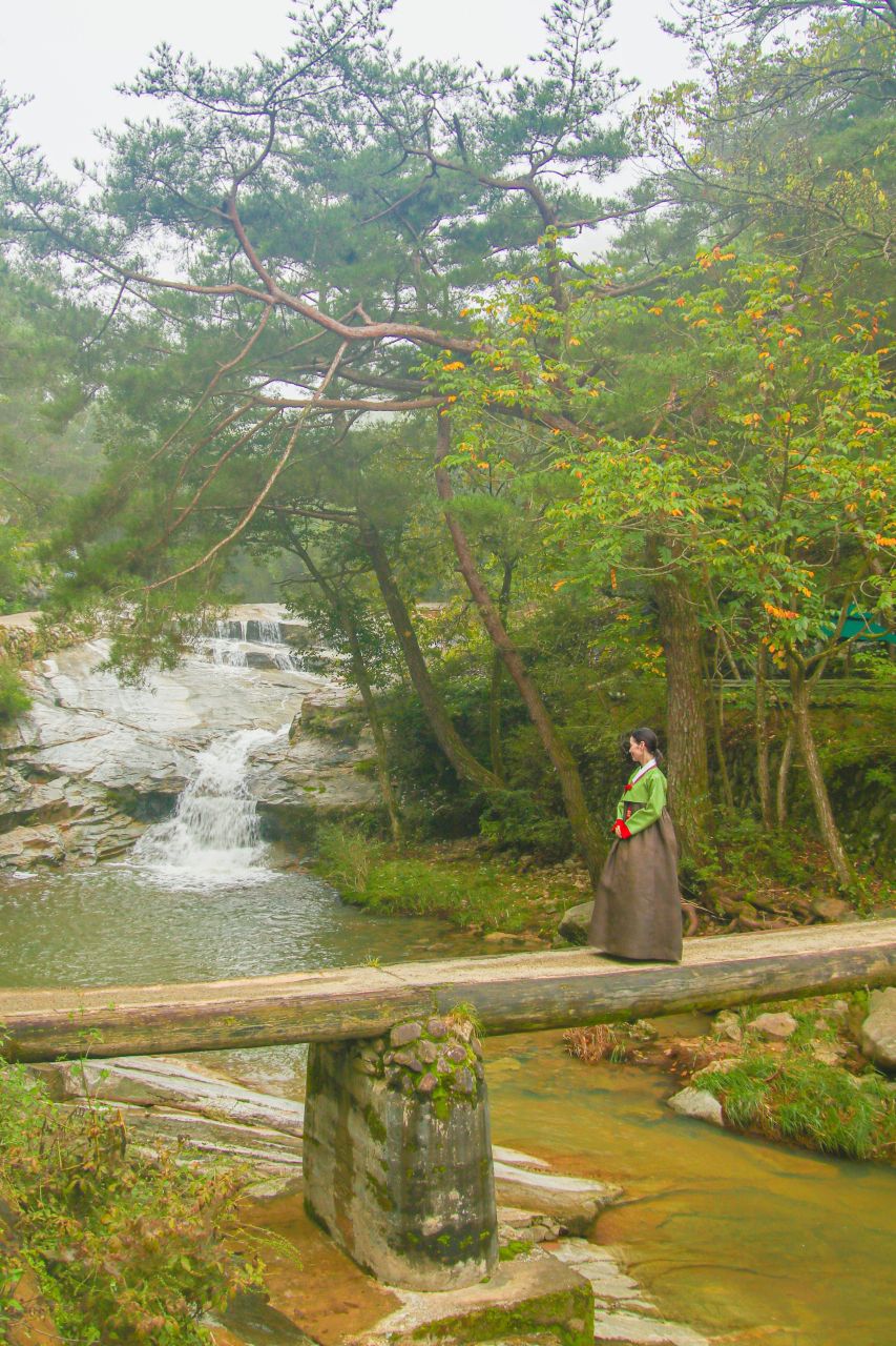 조선시대 품위가 느끼져는 만휴정의 구조를 살펴보면 홑처마 팔작지붕집으로 처마 앙곡과 안허리가 매우 날카로워 정자의 맛을 더욱 살리고 있다. 규모는 정면 3칸, 측면 2칸이다. 전면쪽 3칸은 삼면이 개방된 누마루형식으로 누각 주위 삼면에는 계자각난간을 돌렸다. 뒤쪽 3칸은 어칸이 마루로 전면의 누마루와 연접되어 있으며 후벽의 문하부는 궁판이 높직하게 끼워져 있다.양 퇴칸은 온돌방을 들였는데 방의 앞부분은 일반적인 쌍여닫이 세살문을 달았으나 마루쪽으로는 띠살무늬의 세짝 들어열개문이 설치되어 있다. 전면쪽을 고스란히 개방하여 툇마루로 구성한 예는 흔하지 않으며 약계정과 유사한 평면형식을 보이고 있다. 기둥 상부에는 연봉장식이 가미된 2익공양식의 촛가지가 돌출되어 있어 조선후기 작품으로 간주되지만 말기의 번잡한 양식과는 달리 품위를 유지하고 있다. 창방위에는 연꽃을 새긴 화반을 놓았는데 비교적 공을 들여 조각하였다. 상부는 5량가로 대량 위에 동자주를 세워 종량을 놓았으며 그 위에 제형판대공을 올렸다. ◎ 한류의 매력을 만나는 여행 정보 – 예능 <나는 솔로> 예능 <나는 솔로> 16기에 등장하는 안동의 명소다. 한적한 숲에서 찾아올 이를 기다리는 만휴정과 유일한 길인 외나무다리가 꼭 출연진의 마음을 대변하는 듯하다. |