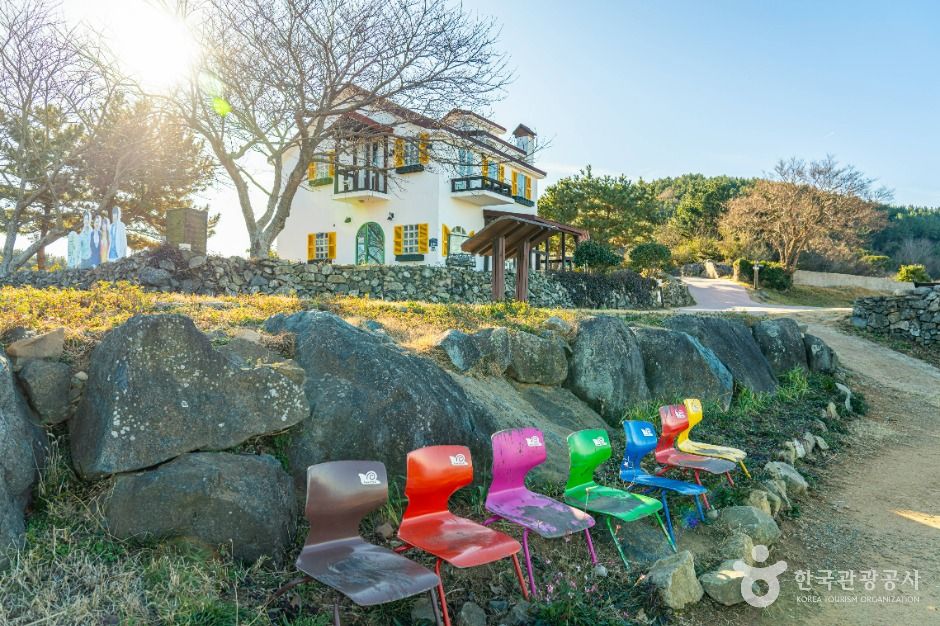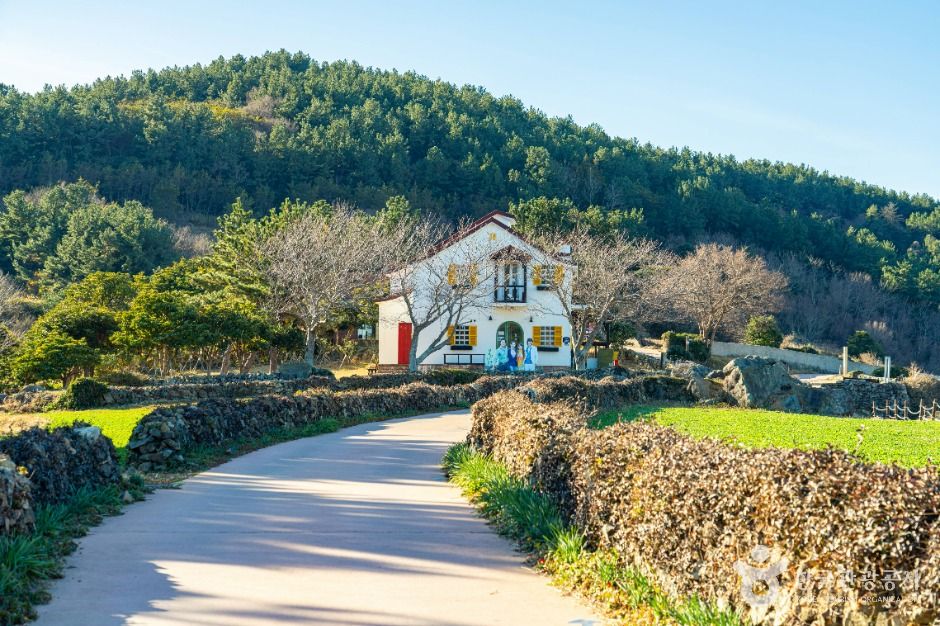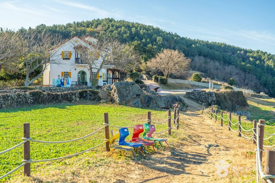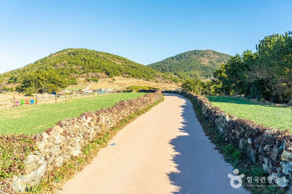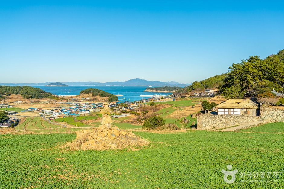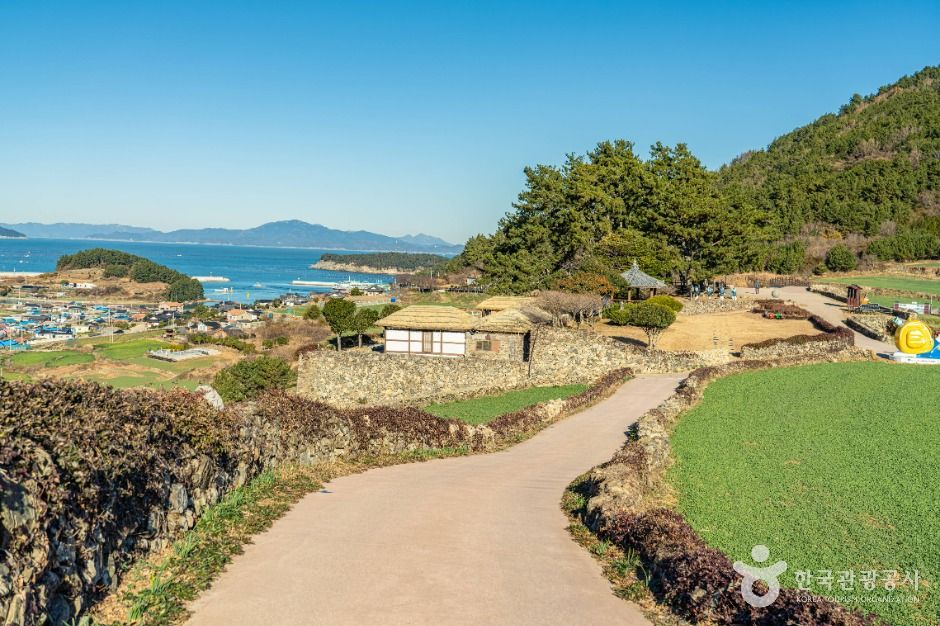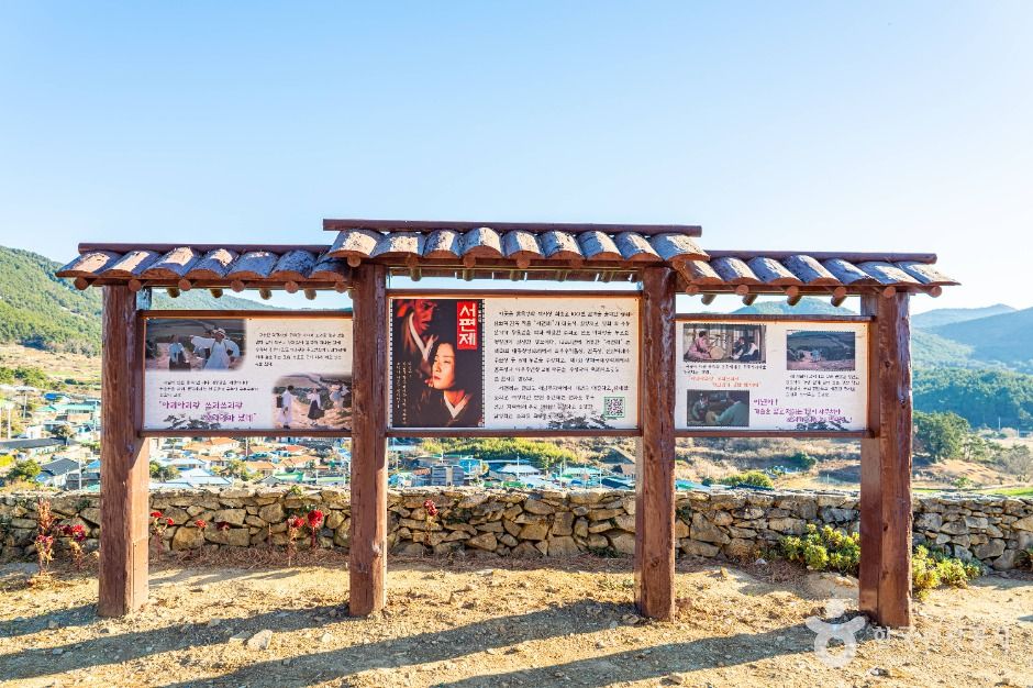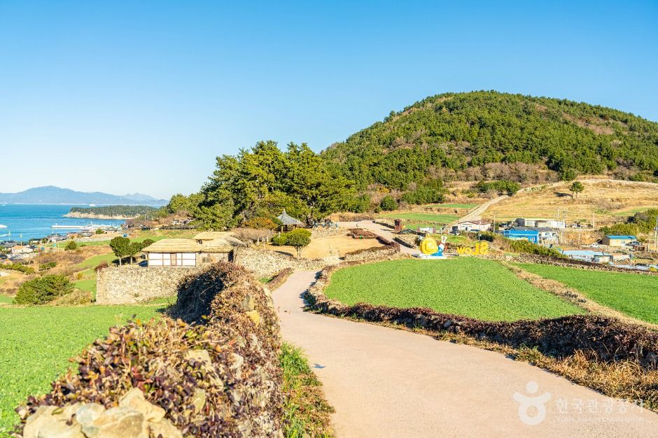 구불구불한 돌담이 매력적인 이곳은 4월 중순이면 노란 유채꽃이 만개하고, 9월 하순에서 10월 초 사이에는 코스모스가 돌담 사이로 피어나 푸른 바다와 어우러져 그림 같은 풍경을 만들어낸다. 노란 유채꽃밭이 펼쳐진 황톳길 옆에는 송화가 소리 공부를 하던 초가가 복원되어 있다. 또한, ‘서편제 쉼터 주막’ 앞마당에는 관광객을 위한 테이블이 마련되어 있어, 막걸리를 마시며 주변 경치를 감상할 수 있다. 봄의 왈츠 드라마 촬영지