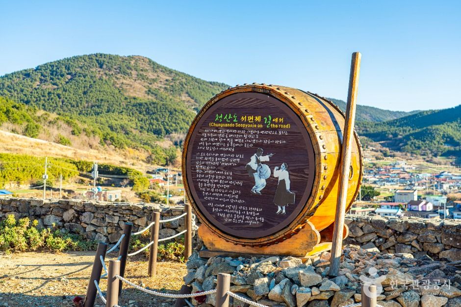 청산도항에서 당리 언덕길을 오르면 영화 「서편제」 촬영지를 만날 수 있다. 「서편제」는 우리나라 최초로 100만 관객을 돌파한 영화로, 남도의 여러 지역에서 촬영되었지만 이곳이 유독 유명한 이유는 유봉 일가가 당리의 황톳길을 내려오며 ‘진도아리랑’을 부르는 장면이 영화의 가장 아름다운 명장면으로 손꼽히기 때문이다. 이 장면은 5분 30초 동안 롱테이크로 촬영되었는데, 원래 이렇게 길게 찍을 계획은 아니었으나 임권택 감독이 이 장소를 너무 마음에 들어해 시나리오를 바꿨다고 한다.
